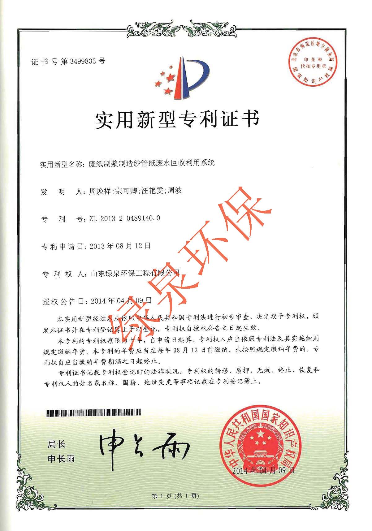 废纸制浆制造纱管纸废水回收利用系统