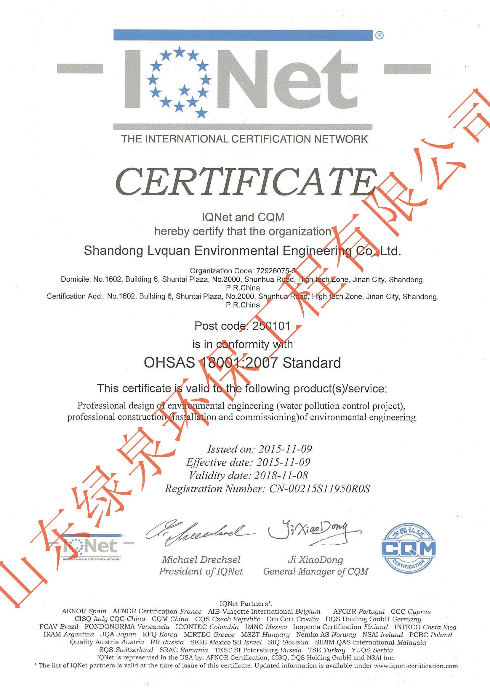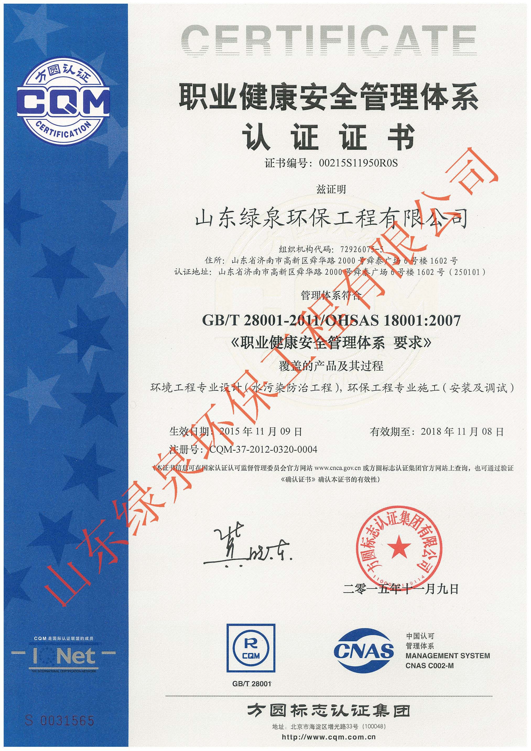 在公司员工的不懈努力下,经过方圆认证专家的全面、严格、细致的指导和审核,确认我公司环境/职业健康安全管理体系符合ISO14001:2004/OHSAS18001:2007标准的要求,并于2015年11月9日,向我公司正式颁发了ISO14001和OHSAS18001管理体系认证证书。