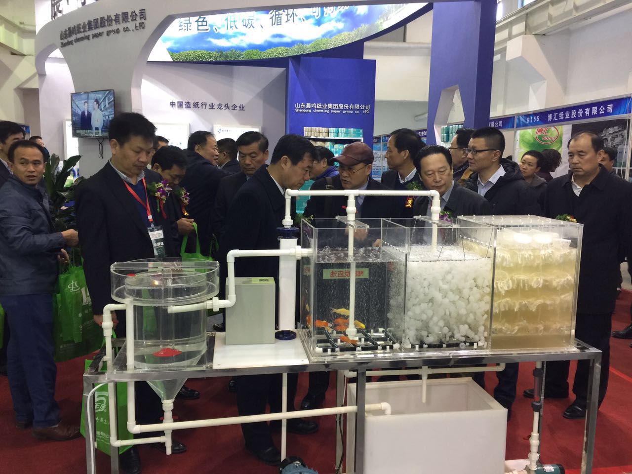 本届展会三天期间,我司的高效厌氧技术、泥膜共生脱氮技术闪亮登场,通过现场循环播放企业宣传片、海报、专业的装置设备、人员宣讲等展出方式,吸引大批观众驻足观看。期间,中国造纸协会理事长赵伟先生、山东省造纸行业协会会长王泽风先生等展会主办方嘉宾参观了我公司的展位,公司总经理周焕祥研究员详细解说了我们的高效厌氧技术,与会的各位嘉宾对我们的技术给予了高度赞扬。此外,本次展会期间,多个造纸企业来咨询了造纸废水的处理技术,已经初步达成了项目合作意向。本次展会极大地提升了公司在行业内的知名度和影响力,展示了公司的技术实力,提高了公司形象,达到了预期目的。