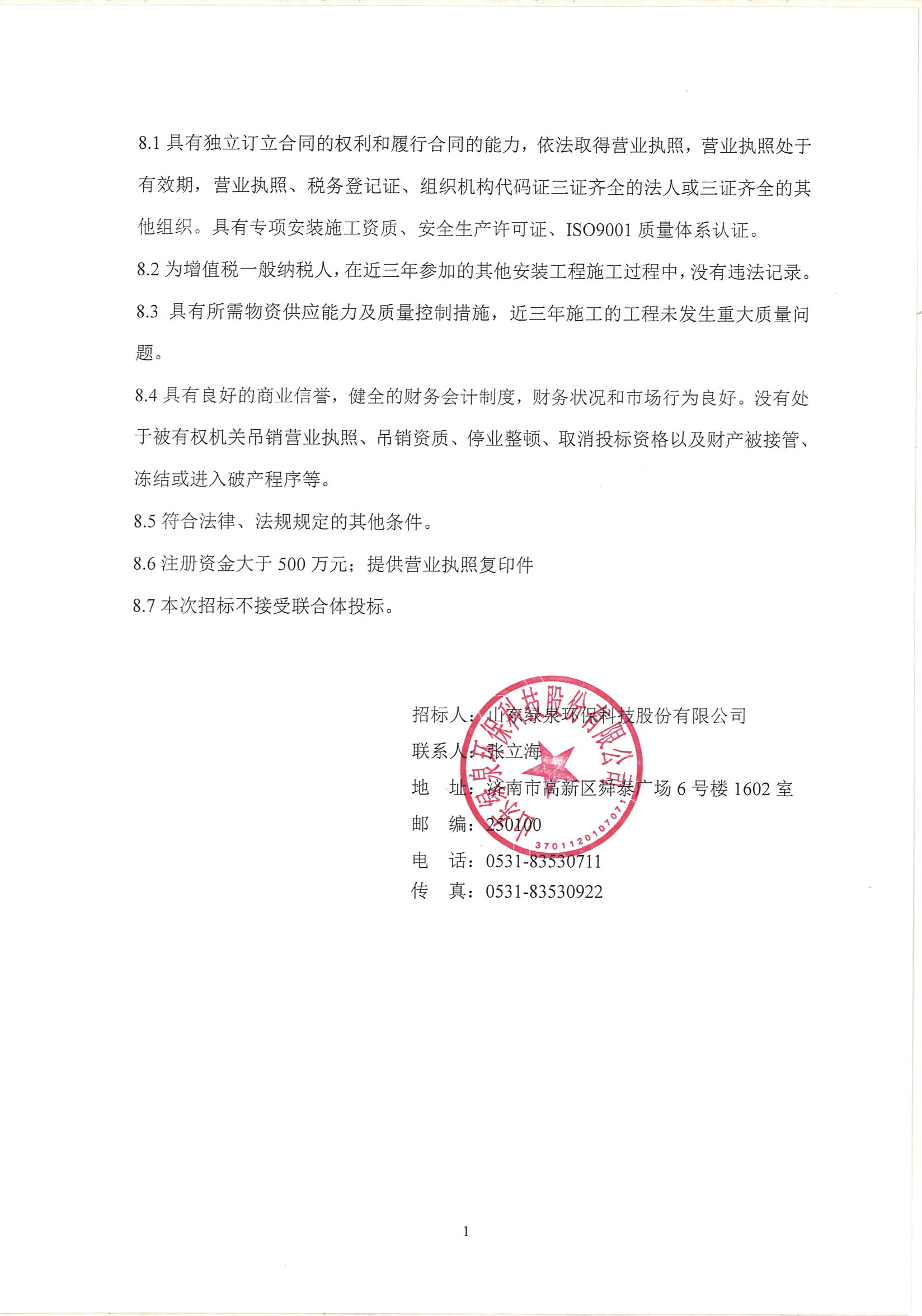 山东某制药厂污水处理安装工程招标公告